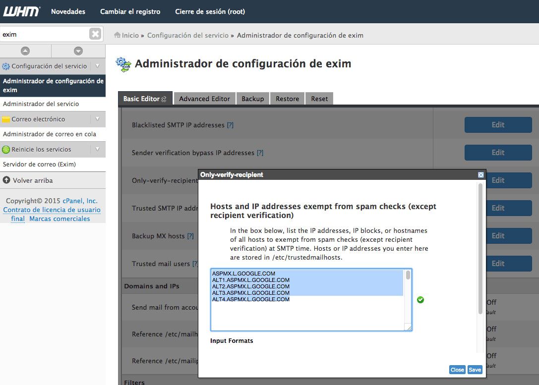 Hay ciertos parametros que puede "omitir" ciertos bloqueos causados por mala reputación, lista negra, y otros, por lo que colocando los servidores de correos (records MX de Google Apps) en nuestra configuración de EXIM en WHM de Cpanel, puede ayudarnos a lograr la meta.